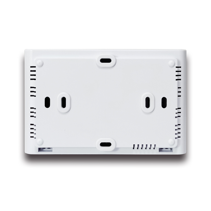 متوفر بتصميم أبيض أنيق، يمكن أيضًا تخصيص منظم حرارة الغرفة RF ليناسب جماليات داخلية مختلفة، مما يجعله خيارًا متعدد الاستخدامات للإعدادات المختلفة. يتناسب نظام الألوان المحايد بسلاسة مع أي ديكور، مما يوفر تكاملاً سلسًا في البيئة الحالية.