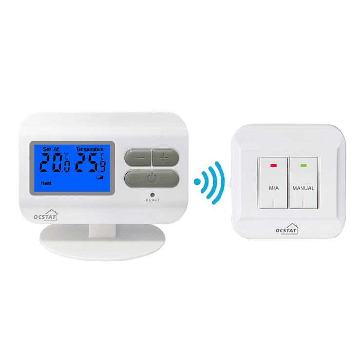 جهاز OCSTAT Wireless Room Thermostat، النموذج ST2301RF، هو جهاز تحكم رقمي متقدم للتحكم في درجة الحرارة مصمم لتوفير التحكم الدقيق في درجة الحرارة لمختلف أنظمة التدفئة.من "غوانغدونغ"، الصين، هذا المنتج يلبي معايير الجودة الدولية مع الشهادات بما في ذلك CE، FCC، و ISO. تصميمه اللاسلكي يوفر ملاءمة مرنة استثنائية،مما يجعلها الحل المثالي لتطبيقات التدفئة الحديثة.