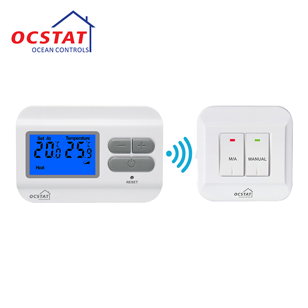 ج 1: منظم الحرارة اللاسلكي للغرفة من العلامة التجارية OCSTAT، ورقم الطراز هو ST2301RF.